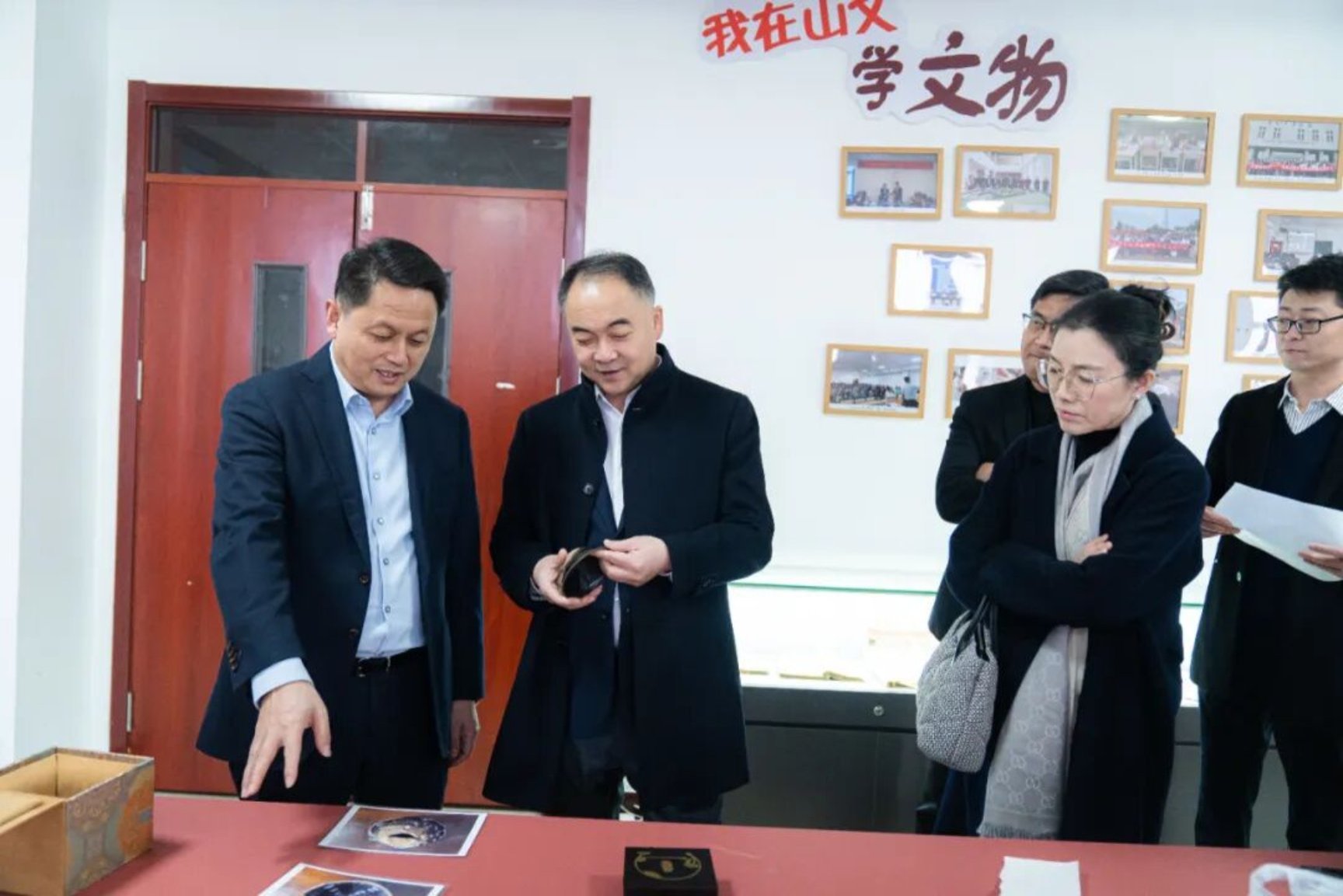 On December 22, Wang Xinli, advisor to the Training Center of the Taiwan Affairs Office of the CPC Central Committee, chairman of the China Cultural Heritage Association (Taiwan), chairman of the Taiwan Advantageous Industries Foreign Cooperation Committee, and member of the Standing Committee of the Shandong Provincial Committee of the Chinese People's Political Consultative Conference, led a delegation to visit our college for inspection and exchange. Zhang Xu, director of the Taiwan Wudengyi Art Museum, and Cong Xiaohua, director of the Beijing Office of the China Cultural Heritage Association (Taiwan), accompanied the delegation. The college's chairman Li Jingping, president Cao Shengqiang, assistant president Xu Yuguo, and heads of relevant departments warmly received the delegation. Both sides engaged in in-depth discussions on core issues such as deepening the integration of industry and education in the cultural sector, reaching broad consensus on cooperation.