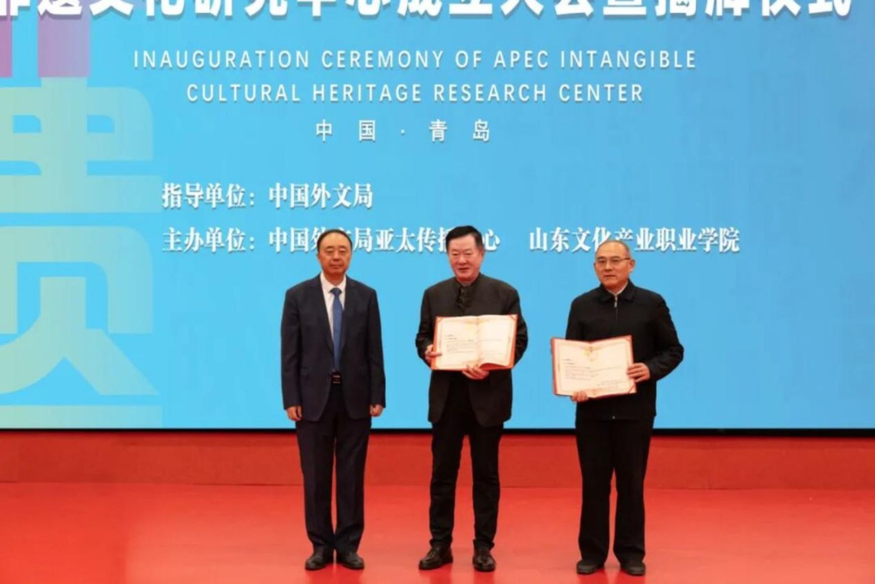 On the morning of November 28,2025, the inauguration ceremony of the "APEC Countries Intangible Cultural Heritage Research Center" was grandly held at Shandong Cultural Industry Vocational College. The center, jointly organized by the Asia-Pacific Communication Center of China Foreign Languages Publishing Administration and Shandong Cultural Industry Vocational College, aims to build a high-end platform for the protection, inheritance, and innovative development of intangible cultural heritage in the Asia-Pacific region, marking a new phase of systematic and regularized exchanges and cooperation in intangible cultural heritage in the Asia-Pacific region.